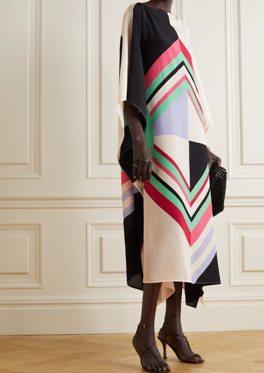 Løft din stil med vores geometriske print til kvinders rober. Blødt touch kombineret med farverige geometriske former. Bådhalsen og det læglange design bringer sofistikering og komfort og skaber en harmonisk blanding af luksus og stil.